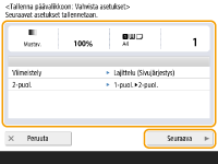 Valitse <Kopio>  määritä kopiointiasetukset. <Päävalikko>-näyttö