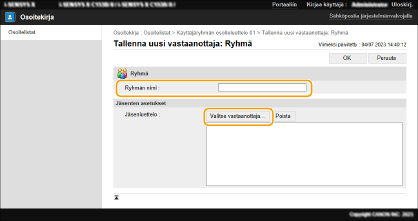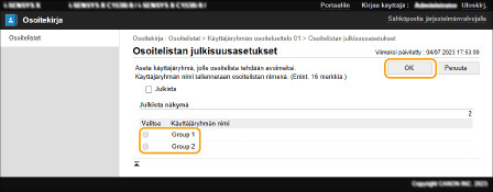 4 | Valitse ryhmä, jossa jaat osoiteluettelon, ja valitse sitten [OK]. ![]() |