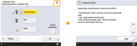 Sõltuvalt ekraanil kuvatud funktsioonist võib kuva paremas ülaosas olla . Kui vajutate nuppu , saate vaadata funktsiooni kirjeldust või kontrollida, kuidas funktsiooni kasutada.