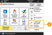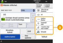 Saate muuta põhifunktsioonide kuval nähtavaid seadete nuppe teiste seadete nuppudega (kopeerimise, faksimise ja skannimise jaoks). <Valikud>. Seadete nuppude asetamisel põhifunktsioonide kuvale, saate kasutada funktsioone tõhusamalt. Lisaks saate isikliku autentimishalduse kaudu sisse logides kuvada erinevaid iga kasutaja kohta seatud põhifunktsioonide kuvasid.