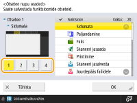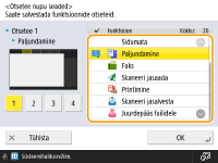 Saate luua otsetee nupu funktsioonidele kuval <Avakuva>. Kasutage seda nupu erineva funktsiooni juurde pääsemiseks ilma kuvale <Avakuva> naasmiseta. Otsetee loomiseks peate administraatori õigustega sisse logima.