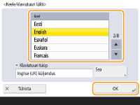 Valige <Keele/klaviatuuri lüliti>, valige loendist keel ja vajutage nuppu <OK>.