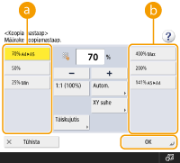 Skannimise saab läbi viia eelnevalt läbi viia, ka siis, kuni seade printimiseks valmistub või prindib. Selle funktsiooni nimi on „reserveeritud koopia”. Näiteks varukoopia tegemiseks, kuni kuvatakse printimise või ootamise ekraani, vajutage <Sule>, määrake koopiaseaded tavapärasel moel ja vajutage  (Alusta).