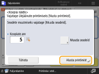 Vajutage <Alusta printimist>, et printida koopiate arv, mis määrasite. Kui valisite punktis 5 <Kõik lehed>, siis prindib seade välja koopiate arvu miinus üks. Kui valisite punktis 5 <Valitud lehed>, siis prindib seade välja koopiate koguarvu.