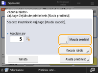 Vajutage <Muuda seadeid> seadete muutmiseks. Nupp <Koopia näidis> kuvatakse pärast seadete muutmist. Paljundage jälle näidis.