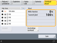 Kulumaterjalide allesjäänud kogust saab kontrollida kaug-kasutajaliidese kaudu. Seadme oleku kontrollimine |