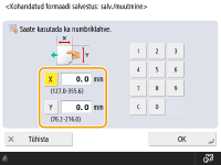 Määrake külje <X> ja külje <Y> pikkus. Vajutage nuppu <X> või <Y>, et sisestada mõlema külje pikkus numbriklahvide abil.