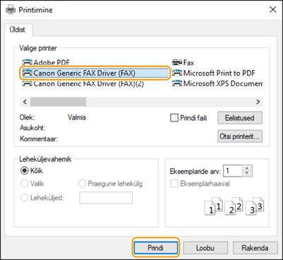 Valige masin ja klõpsake [Print] või [OK].