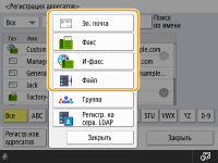 ![]() | В адресной книге можно зарегистрировать номер факса или адрес электронной почты получателя, который можно указать при отправке отсканированных документов. Также в адресной книге в качестве адресата можно зарегистрировать адресат И-факса, папку на файловом сервере (IP-адрес и путь) и хранилище (Суперъячейка) многофункционального принтера Canon. |