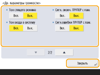<Громкость входящ. звонка>Нажмите, чтобы отрегулировать громкость входящих факсов, когда для параметра <Режим приема> задано значение <Факс/Тел.(Авт. пер.)>. Чтобы отключить звук, нажмите
