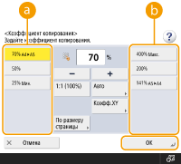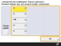 ![]() | Если требуется копировать оригиналы произвольного формата или очень прозрачные оригиналы, а также если нужно копировать документ с использованием бумаги, которая загружена в универсальный лоток, то формат бумаги необходимо выбрать вручную. |