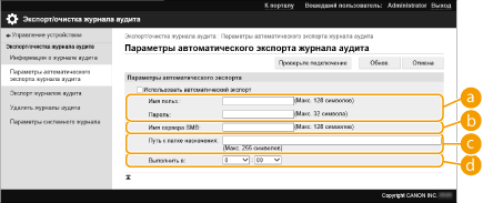 Если параметр [Параметры автоматического экспорта журнала аудита] включен, нельзя вручную удалить журналы аудита. |