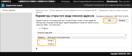 4 | Выберите группу, которой необходимо предоставить доступ к списку адресов, и нажмите кнопку [OK]. ![]() |