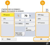 ![]() | Можете да увеличавате или намалявате чрез задаване на съотношение на копиране (%). Можете да задавате поотделно вертикално и хоризонтално съотношение. Увеличаване или намаляване на копията чрез задаване на съотношение на копиране | |
