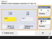 | | Можете да копирате няколко страници оригинали върху един лист. Тази функция ви позволява да копирате с по-малко количество хартия от оригиналния брой страници. |