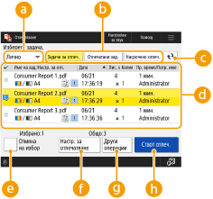 На този екран можете да отпечатате задържани документи, защитени документи за печат или шифровани защитени документи за печат. Можете да проверите съдържанието на тези документи или планираните документи за печат, или да промените настройките за печат.