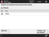 Екран вибору розташування зберігання