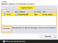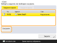 (Стоп) під час обробки завдання надсилання/друку й відображається екран, що веде до вікна <Завдання надсил.>/<Завдання друку>, поточне завдання надсилання/друку призупиняється та з’являється вікно <Завдання надсил.>/<Завдання друку>.