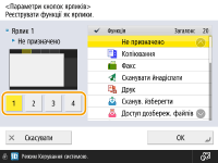 На екрані <Головний> можна створити ярлики для функцій. Використовуйте цю кнопку для доступу до різних функцій, не повертаючись на екран <Головний>. Щоб створити ярлик, увійдіть у систему з правами адміністратора.