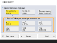 2 | Виберіть комбінацію версії LDAP-сервера та кодування символів і натисніть <Далі>. ![]() |
