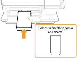 Esta secção descreve como colocar envelopes com a orientação correta, além de procedimentos que é necessário efetuar antes de colocar envelopes. Para ver uma descrição do procedimento geral de colocação de envelopes no tabuleiro multifunções, consulte Método básico de colocação de papel.