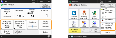 É possível alterar os botões de programação apresentados nos ecrãs das funções básicas (para operações de cópia, envio de faxes e leitura). Também é possível apresentar um ecrã das funções básicas diferente e personalizado para cada utilizador com sessão iniciada.