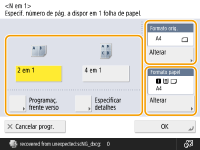 Para fazer cópias frente e verso ou ler originais frente e verso para fazer cópias de 1 face, carregue em <Programaç. frente verso>. Para obter mais informações sobre a programação, consulte "Cópia frente e verso" no passo 4 de