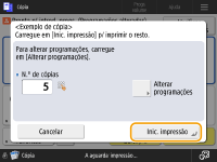 Carregue em <Inic. impressão> para imprimir o número de cópias especificado. Se tiver selecionado <Todas as páginas> no passo 5, será impresso o número de cópias menos uma. Se tiver selecionado <Páginas especificadas> no passo 5, será impresso o número total de cópias.