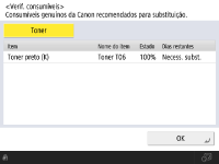 Carregue  (Contr. estado)  <Consumíveis/Outros>  <Verfificar consumíveis>.
