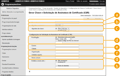 Pode gerar uma chave e CSR na máquina. Também pode apresentar os dados da CSR no ecrã e exportá-los como um ficheiro.