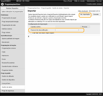 Introduza a palavra-passe em [Password de descodificação] e clique em [Inic. importação]