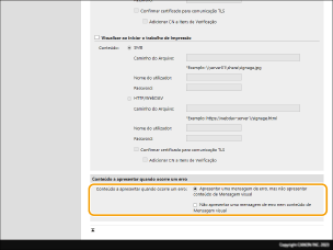 Especifique as programações do proxy na função Mensagem visual para corresponder às programações em <Programações do proxy>. Se houver um proxy configurado, o conteúdo especificado pode não ser apresentado. Neste caso, pode definir um endereço de exceção para que o servidor proxy não seja usado.
