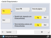 Para desativar a gestão de ID de departamento, carregue em <Desligado>.