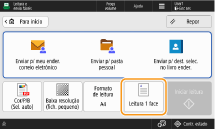 O ecrã Leitura e envio fáceis dispõe de botões para configurar facilmente as definições básicas, tais como o destino e o modo de cor.