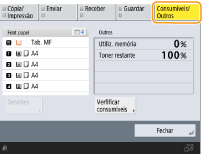 Se carregar em <Fechar> no ecrã que indica a existência de papel encravado, é possível que consiga continuar a efetuar operações e especificar programações sem retirar o papel encravado de imediato.