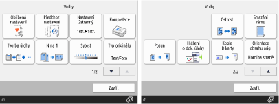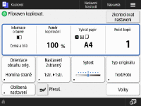 Obrazovka základních funkcí kopírování