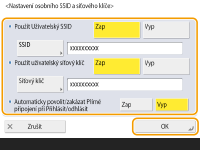 Stiskněte <Nastavení osobního SSID a síťového klíče>, zadejte osobní identifikátor SSID a síťový klíč a stiskněte <OK>.