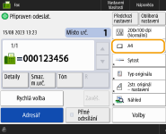 Typ úlohy: Fax (paměťová odesílání) nebo Skenovat a odeslat (Fax/I-fax)