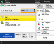 Je-li možnost <Zobrazit oznámení při akceptování úlohy> nastavena na <Zap>, lze z obrazovky zobrazené po přijetí úlohy odesílání zobrazit obrazovku <Monitor stavu>. <Zobrazit oznámení při akceptování úlohy>