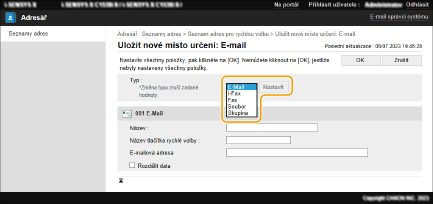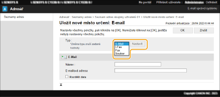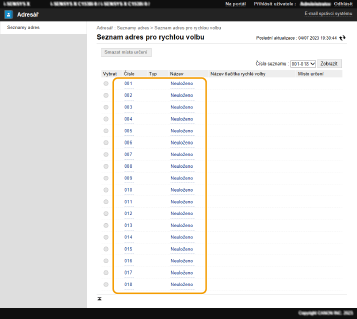[Seznam adres pro správce] je k dispozici pouze správcům, kteří se do systému přihlásí s přístupovými právy správce (Administrator) nebo s právy správce zařízení (DeviceAdmin).