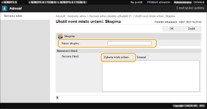 Zadejte název pro skupinu do [Název skupiny] a klikněte na [Vyberte místo určení…] pro [Seznam členů].
