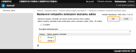 Vyberte skupinu, pro niž chcete nastavit sdílení seznamu adres, a klikněte [OK].