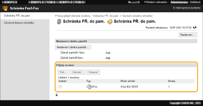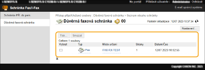 S pomocí Remote UI (Vzdálené UR) můžete tisknout, odesílat nebo mazat faxy a I-faxy dočasně uložené ve faxové/I-faxové schránce.