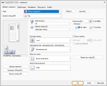 Podle potřeby zadejte nastavení tisku a klikněte na [OK].