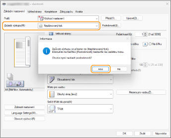 Naplánované tiskové úlohy se provedou podle času nastaveného ve stroji. Ověřte předem, zda čas nastavený ve stroji odpovídá času ve vašem počítači.