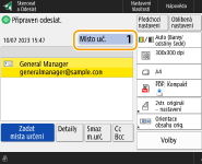 Chcete-li po skenování vybrat místo určení z obrazovky <Rychlá volba>, nastavte funkci <Rychlá volba> na možnost <Výchozí obrazovka>. Práce požadovaná pro odesílání naskenovaných dokumentů do stejného místa určení může být omezena. <Výchozí obrazovka>
