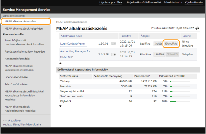 Kattintson az [Start]/[Stop] lehetőségre a használni kívánt MEAP-alkalmazásnál.