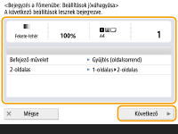 gombot a másolási beállítások megadásához. <Főmenü> képernyő