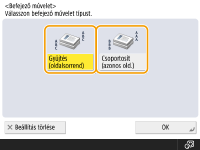 <Feladatkészítés> gombokat a Másolás alapképernyőjén, akkor abban az esetben is használhatja a Gyűjtés/csoportosítás funkciót, ha az eredetit a üveglapra helyezi.Szúrjon be munkaelválasztót az egyes oldalak közé csoportosított kimenet esetébenHa a <Csoportosítás (azonos oldalak)> lehetőséget választja, beszúrhat egy munkaelválasztót az egyes csoportok közé. További információért lásd: <Munkaelválasztó csoportok közé>. <Munkaelválasztó csoportok közé>
