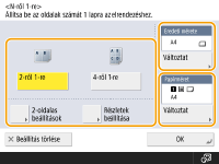 Ha szeretne 2-oldalas másolatokat készíteni, vagy szeretne 2-oldalas eredetik beolvasásával 1-oldalas másolatokat készíteni, nyomja meg a <2-oldalas beállítások> gombot. A beállítással kapcsolatban további információt a „2-oldalas másolás” című részben talál, az